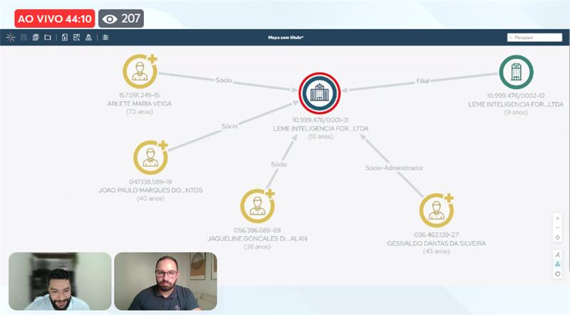 Danilo Diniz foi categórico ao afirmar que “Eu sempre falo para os meus alunos, hoje não tem nada melhor do que a LEME Forense, principalmente para identificar grupo econômico”. O valor não está apenas no acesso aos dados, mas na capacidade de transformá-los em informação, organizada e acionável.