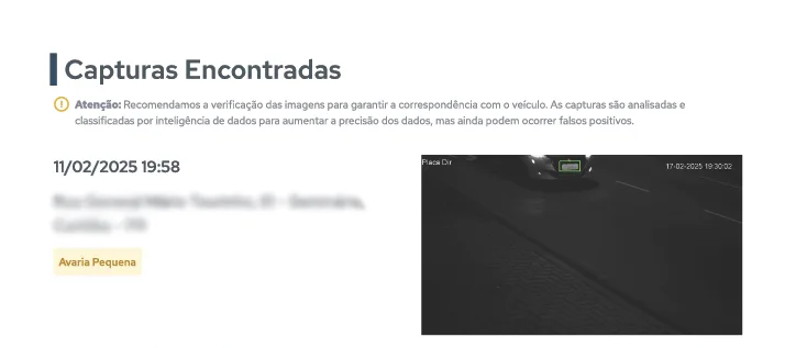 Alerta com imagem de onde o veículo foi visto.